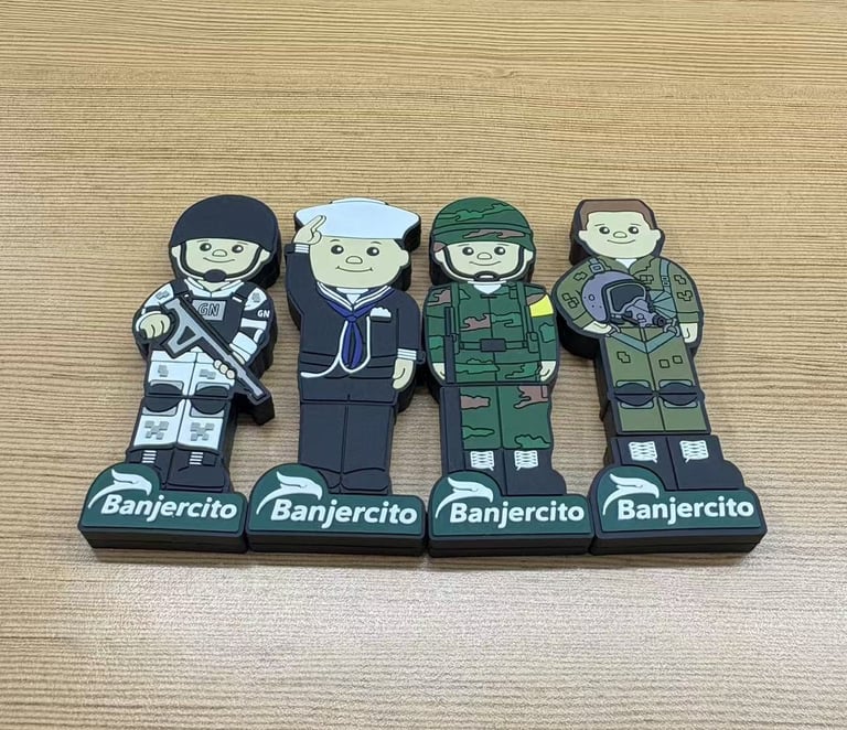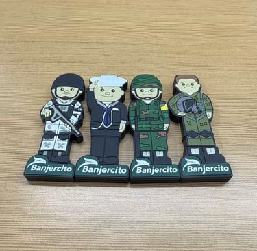 Memorias USB personalizadas de 32 GB con chip 3.0, fabricadas en PVC moldeado y diseñadas a medida en forma de soldado, marino, guardia nacional y piloto. Un proyecto que combina funcionalidad, detalle y representación institucional.